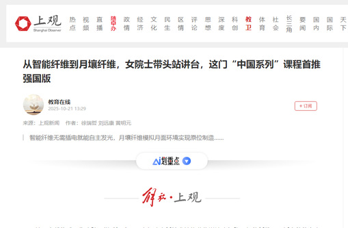 日前,作为上海思政大课“中国系列”之一,《锦绣中国》课程升级推出“强国版”,带领青年走进一个由纤维编织的神奇新世界。