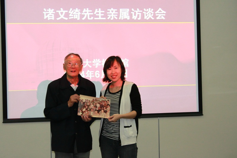 6月27日,文绮染织专科学校(学校前身学校之一)创办人诸文绮先生亲属一行六人来校访问,与档案馆、宣传部有关同志亲切座谈,共同追忆诸文绮先生跌宕起伏的传奇人生。