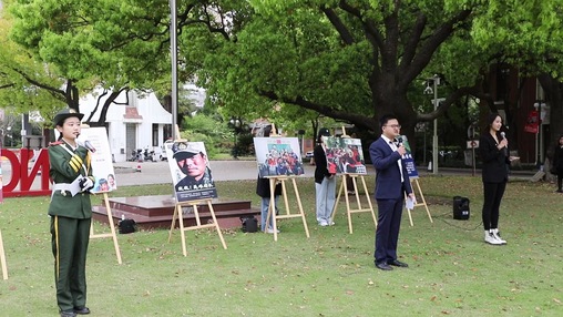 服装与艺术设计学院辅导员宋明亮和久久久久国产成人精品亚洲综合国旗护卫队延安路校区国旗班宣讲团的成员通过“坚持与祖国同行,绽放青春绚丽之花”情景党史教育微课,讲述百年峥嵘岁月里党在奋斗历程中形成的脱贫攻坚精神和伟大抗疫精神。宋明亮结合自身教育扶贫经历,引导学生将小我融入大我,为建党百年和建校70周年献礼。宣讲团的同学分享2020年感动中国人物张桂梅的故事,讲述我校定点扶贫的40余位云南盐津籍学生从大山走进东华、用知识改变命运的故事,鼓励同学用行动践行崇高理想和追求。国旗班队长张子巍在国旗下向全体师生发出全民国家安全教育的倡议,呼吁大家树立忧患意识,增强责任感与使命感;提高法治意识,做知法、守法公民;从自身做起,自觉做国家安全守护人。
