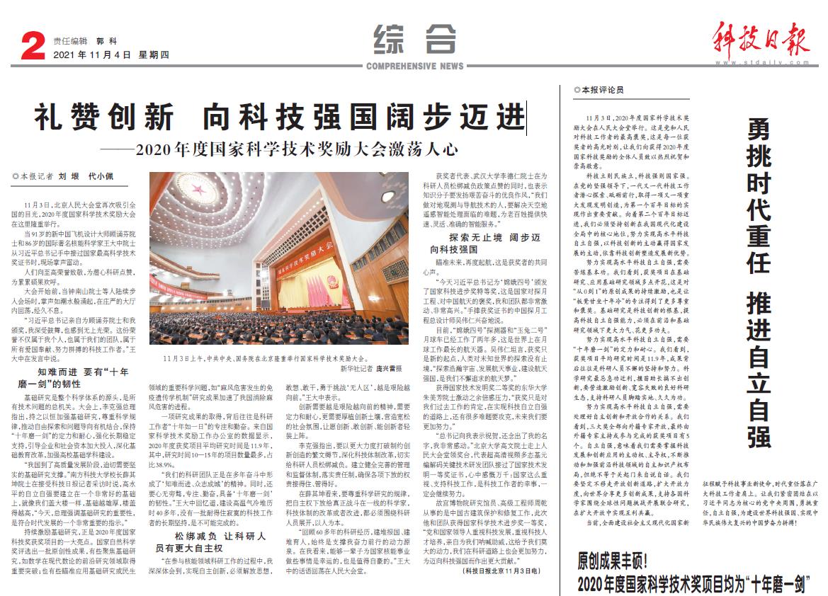 11月3日上午,中共中央、国务院在北京隆重举行国家科学技术奖励大会。